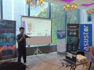 Mr. Bryan Hsu, South East Asian Sales Representative, took the stage as the first speaker, delving into the different categories of Network Attached Storage (NAS) offered by Asustor. He presented a range of solutions tailored to various needs, including Personal NAS, Small Office NAS, Small Business/Small and Medium Enterprises NAS, Expansion Units, and All-Flash Storage options.