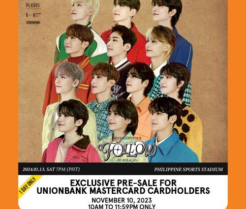 Darl+ing, listen up: If you’re a UnionBank Mastercard Cardholder, there will be an exclusive presale for you on November 10 so you can get early access to the SEVENTEEN TOUR ‘FOLLOW’ TO BULACAN!