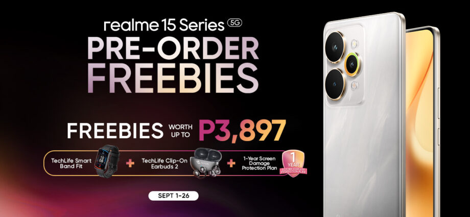 Pre-ordering comes with exciting freebies worth up to P3,897, including a TechLife Smart Band Fit, TechLife Clip-On Earbuds 2, and a 1-Year Screen Damage Protection Plan, giving fans more value as they upgrade to realme 15 Series 5G.