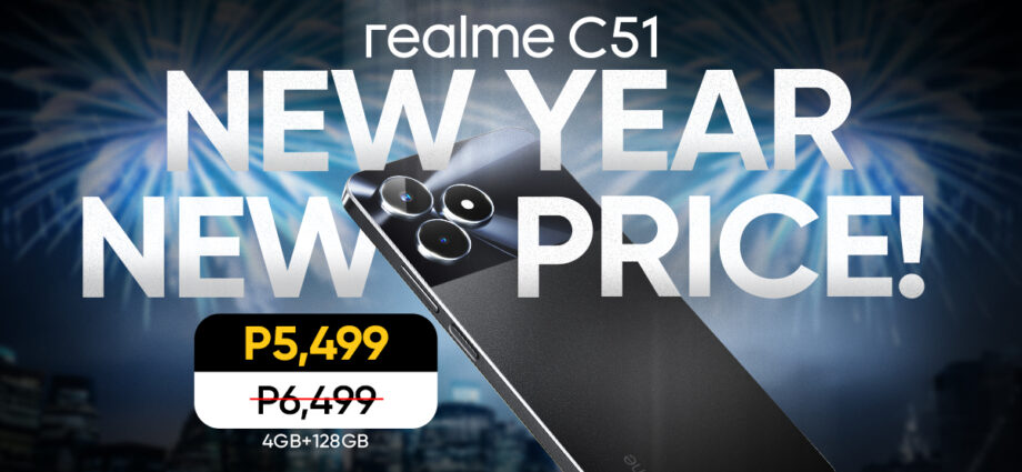 Start the year right and score big on savings as the realme C51 smartphone in the 4GB+128GB storage variant is finally available for only P5,499 beginning January 5, 2024.