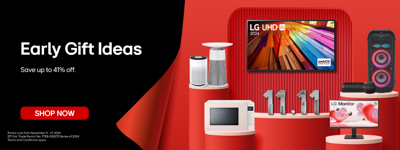 Shop ahead for the holidays with exclusive savings on TVs, speakers, monitors, and various appliances such as microwave ovens and air purifiers from November 11 to 17 during the 11.11 Mega Sale at the LG Online Brand Store.