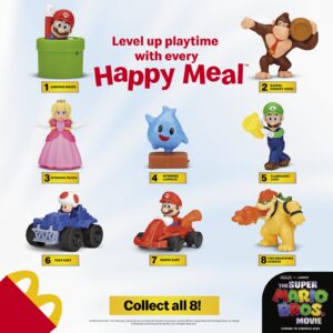 The simple and fun characters of Super Mario will come to life through 8 toys that you can collect by purchasing your favorite McDonald’s Happy Meal. Get the full heroic adventure by completing all 8 toys!