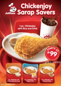 “Filipinos have always loved Chickenjoy, and with Sarap Savers, we want to make it easy for everyone to enjoy that joy anytime, whether it is a quick meal after a long day or a simple treat with the family,” said Dorothy Ching, vice president for marketing of Jollibee Philippines. “It is the same Chickenjoy taste people know and love, now at prices that are easy on the wallet.”