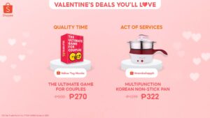 Make the season of love even more special and shop at Shopee’s Valentine’s Deals You’ll Love until February 14 for deals and discounts up to 90% off on perfect date needs and intimate gifts for your loved one. For more info, visit: https://shopee.ph/m/valentines-deals-youll-love