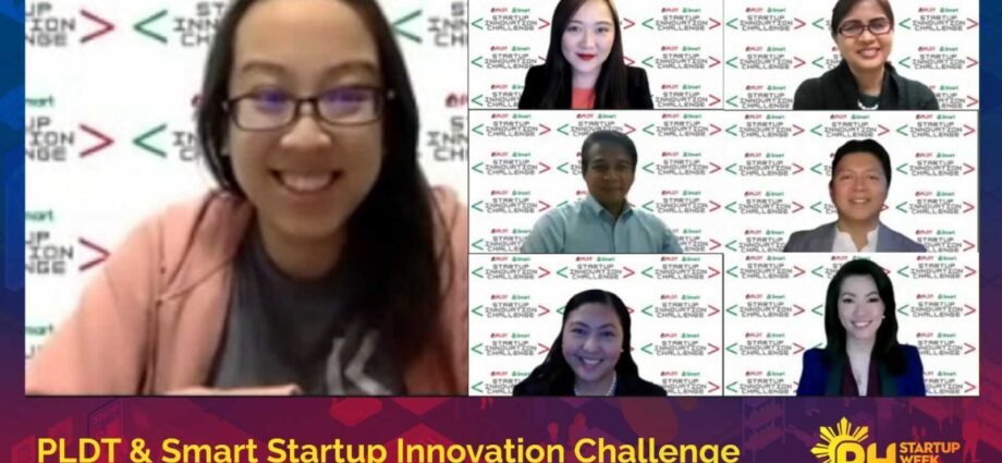 Nudgyt’s Kathleen Yu confidently pitched their team’s innovative program to PLDT’s key executives including PLDT VP and Head of Enterprise Innovations and IoT Business Development Melvin Jeffrey Chan, FVP for Investor Relations and Chief Sustainability Officer Melissa Vergel De Dios, VP and Head of Technology Strategy and Transformation Office Arvin Siena, VP and Head of Enterprise Busines Ding Villarino, Smart’s Strategic Partnerships Consultant Espen Wiig Warendorph, and IdeaSpace Executive Director Katrina Rausa-Chan, with PLDT FVP and Group Corporate Communications Head Cathy Yap-Yang hosting the pitches and awarding segment.